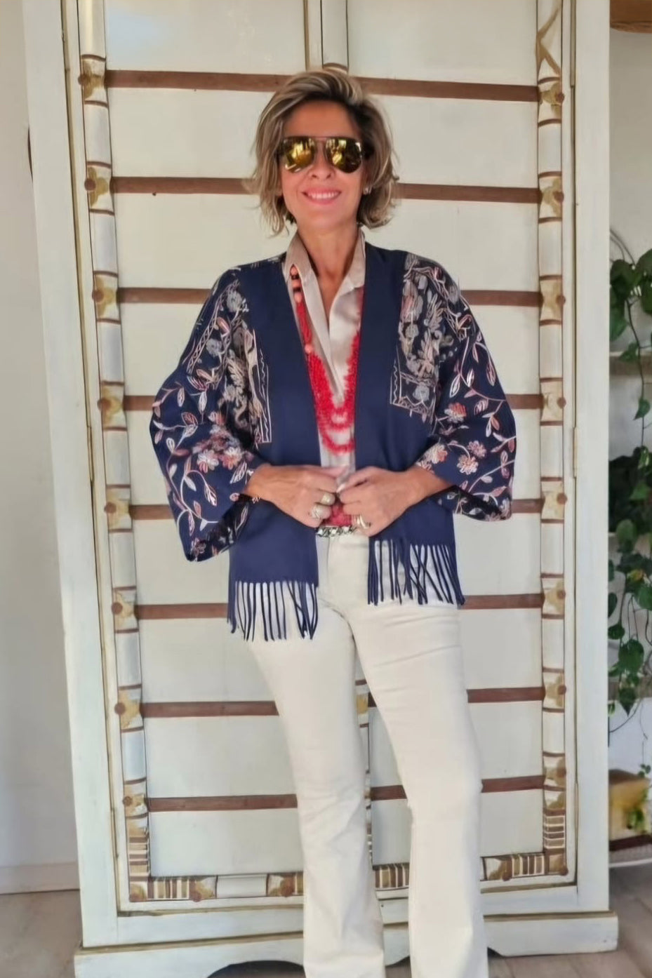 Necklaces: Choose beautiful, statement necklaces that are rich in color. A bold piece of jewelry beautifully complements the rich embellishments of JoyFull jackets, further elevating your style.