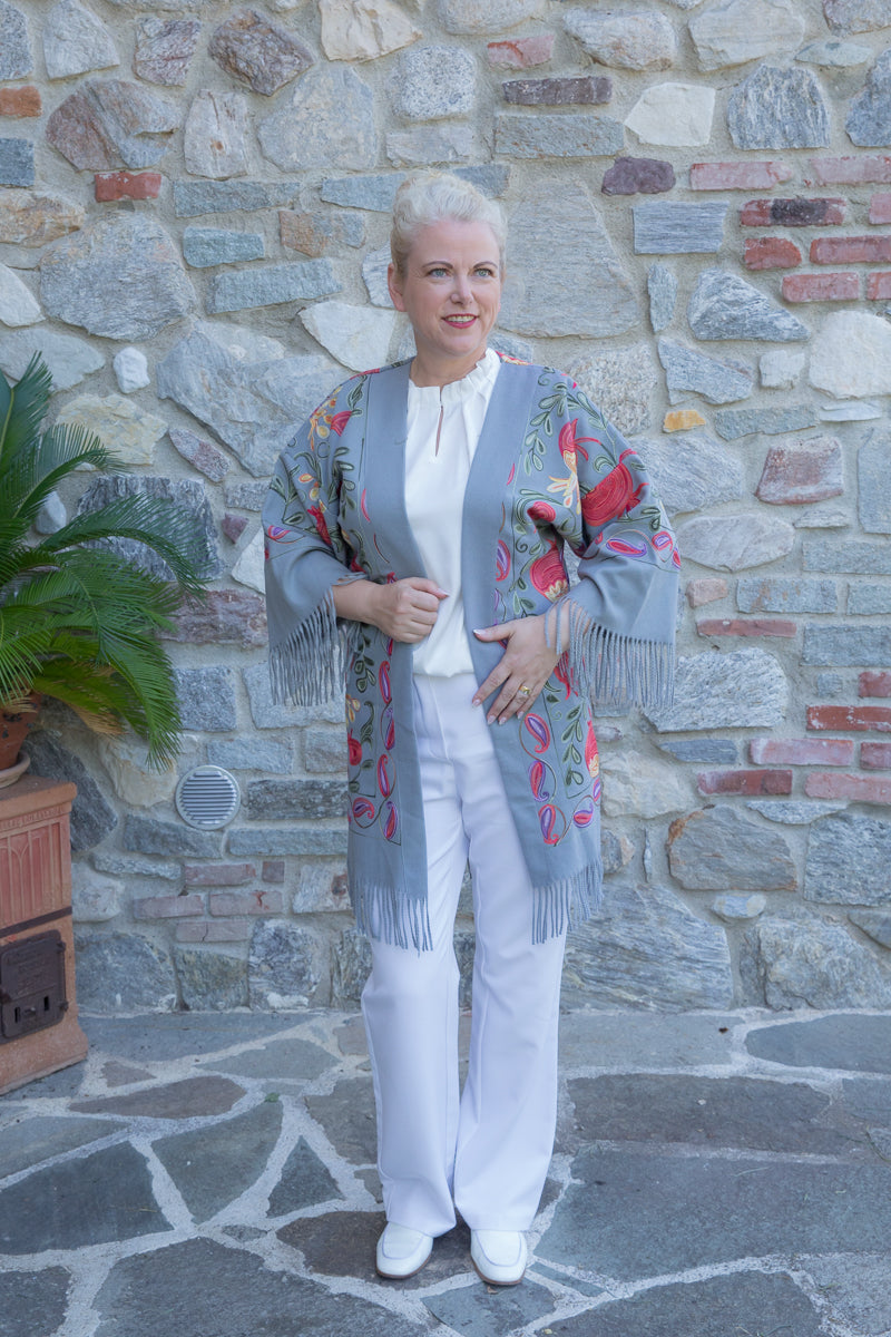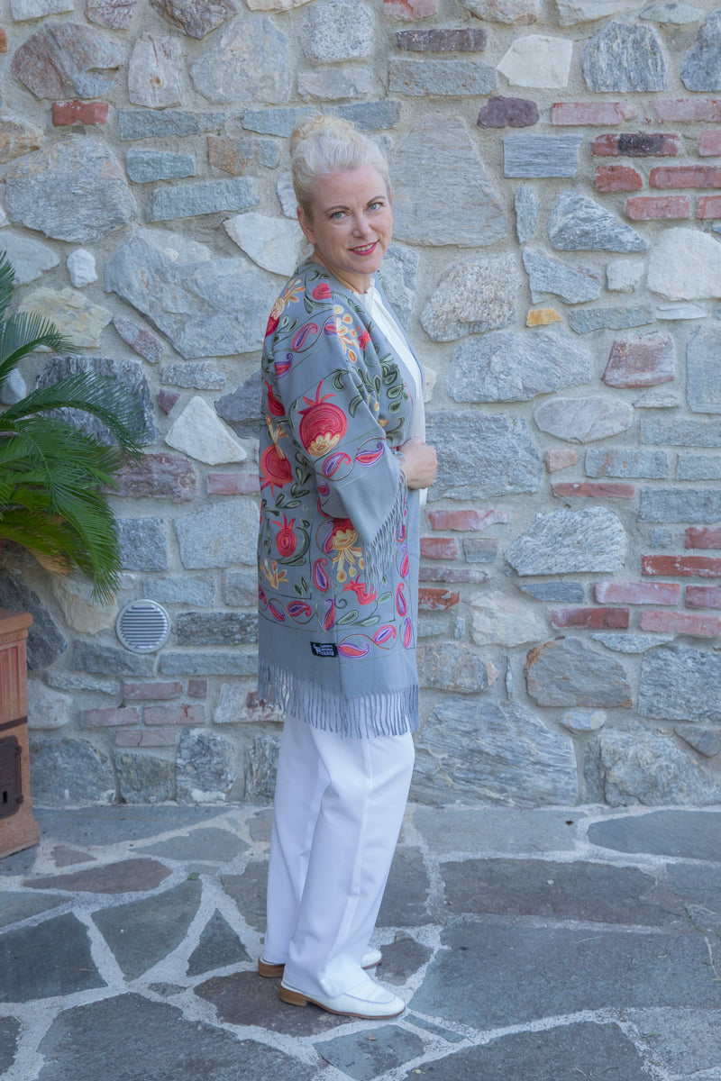 Direttamente dalla tradizione uzbeca, questo caban in morbido cashmere offre calore e comfort avvolgente. I ricami tradizionali uzbechi donano un tocco unico di personalità e ricchezza, trasformando ogni capo in un’opera d’arte. Avvolgersi nella carezza lussuosa del cashmere regala un’esperienza di raffinatezza e magia.