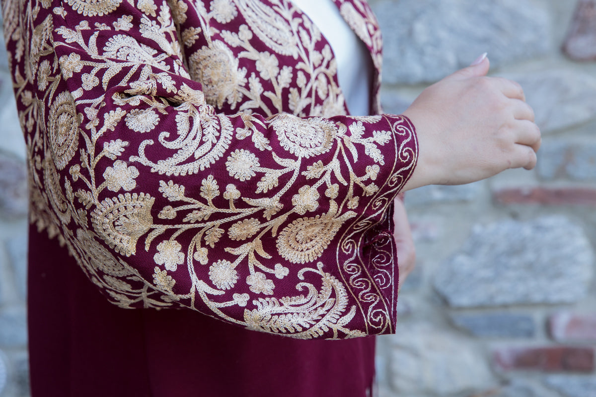 Preferisci il lavaggio a secco per evitare danni ai tessuti pregiati e alle decorazioni. Evita l'esposizione diretta alla luce solare per lunghi periodi e conservala in un luogo fresco e asciutto, al riparo dall'umidità. Stirare a bassa temperatura sul rovescio o utilizzare un panno protettivo.