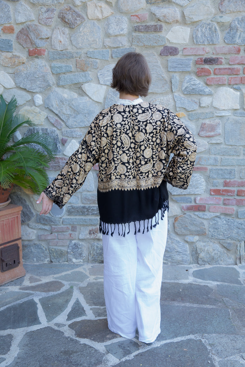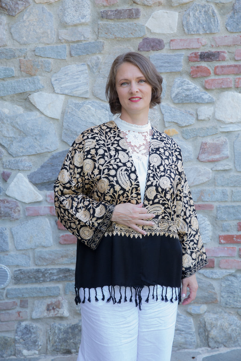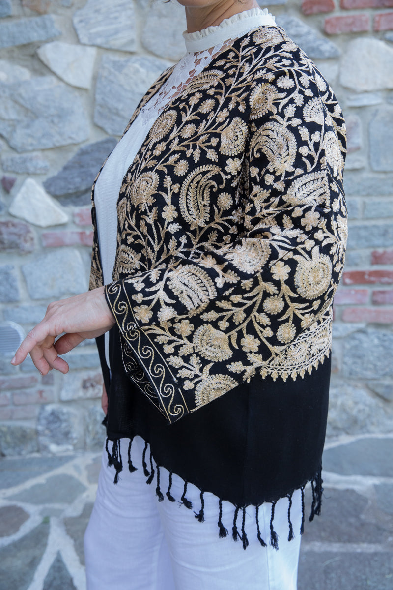 Caban in seta dalla linea morbida, un capo versatile e ricercato, impreziosito da ricami realizzati con fili di trame pregiate. Perfetto equilibrio tra sportività ed eleganza, questo capo sofisticato dona un tocco glamour e chic in ogni occasione.