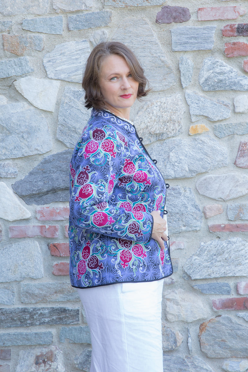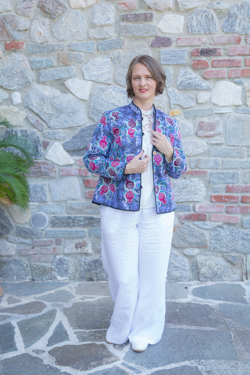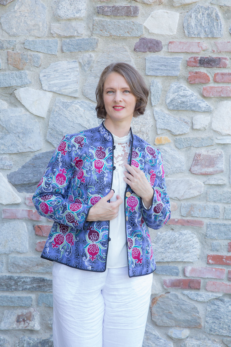 Giacca in cotone, interamente ricamata secondo l'antica tecnica ornamentale uzbeca, che richiamano le decorazioni tradizionali dell'arte di questo Paese. Ogni giacca è unica e si distingue per i ricami particolari, inusuali e accattivanti. Le linee morbide e la vestibilità rilassata rendono questi capi versatili, perfetti per un look sportivo ma anche di tendenza, con grande personalità. Realizzate in tessuto fermo, queste giacche sono interamente fatte a mano in Uzbekistan e arricchite da bottoni gioiello selezionati per esaltare l'esclusività della collezione JoyFull.