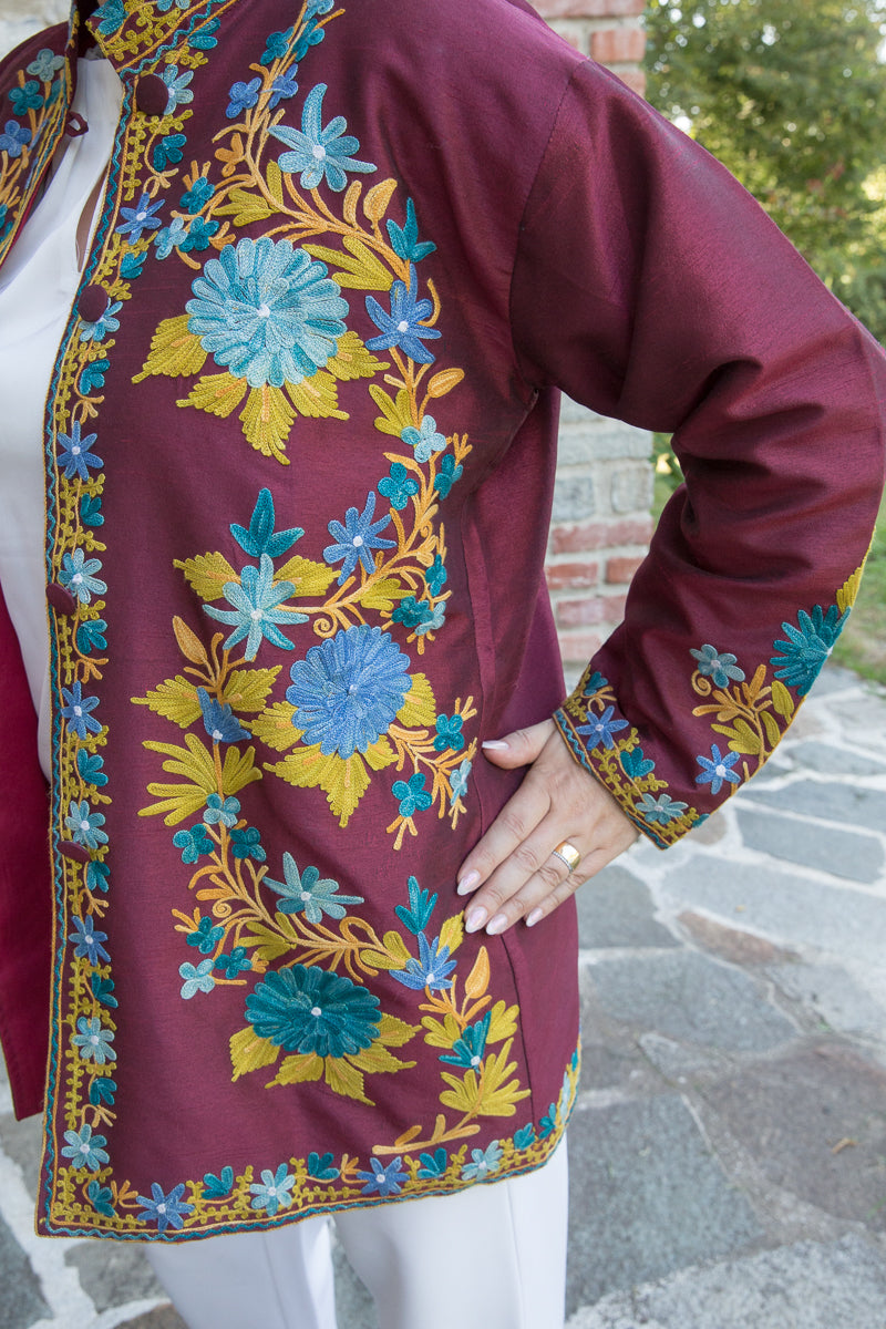 Giacca in pura seta, impreziosita da ricami raffinati ed esclusivi, che rappresentano il massimo del lusso e dell'eleganza. Ogni dettaglio è pensato per offrire un’esperienza di stile unica, avvolgendo chi la indossa in trame preziose e sofisticate. I delicati ricami, realizzati con cura artigianale, aggiungono un tocco glamour che non passa inosservato. Perfette per chi desidera distinguersi con classe e raffinatezza, queste giacche trasformano ogni outfit in un'espressione di bellezza senza tempo. Indossare una di queste creazioni significa immergersi nel lusso più esclusivo e inimitabile.
