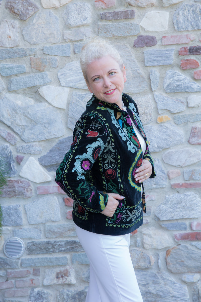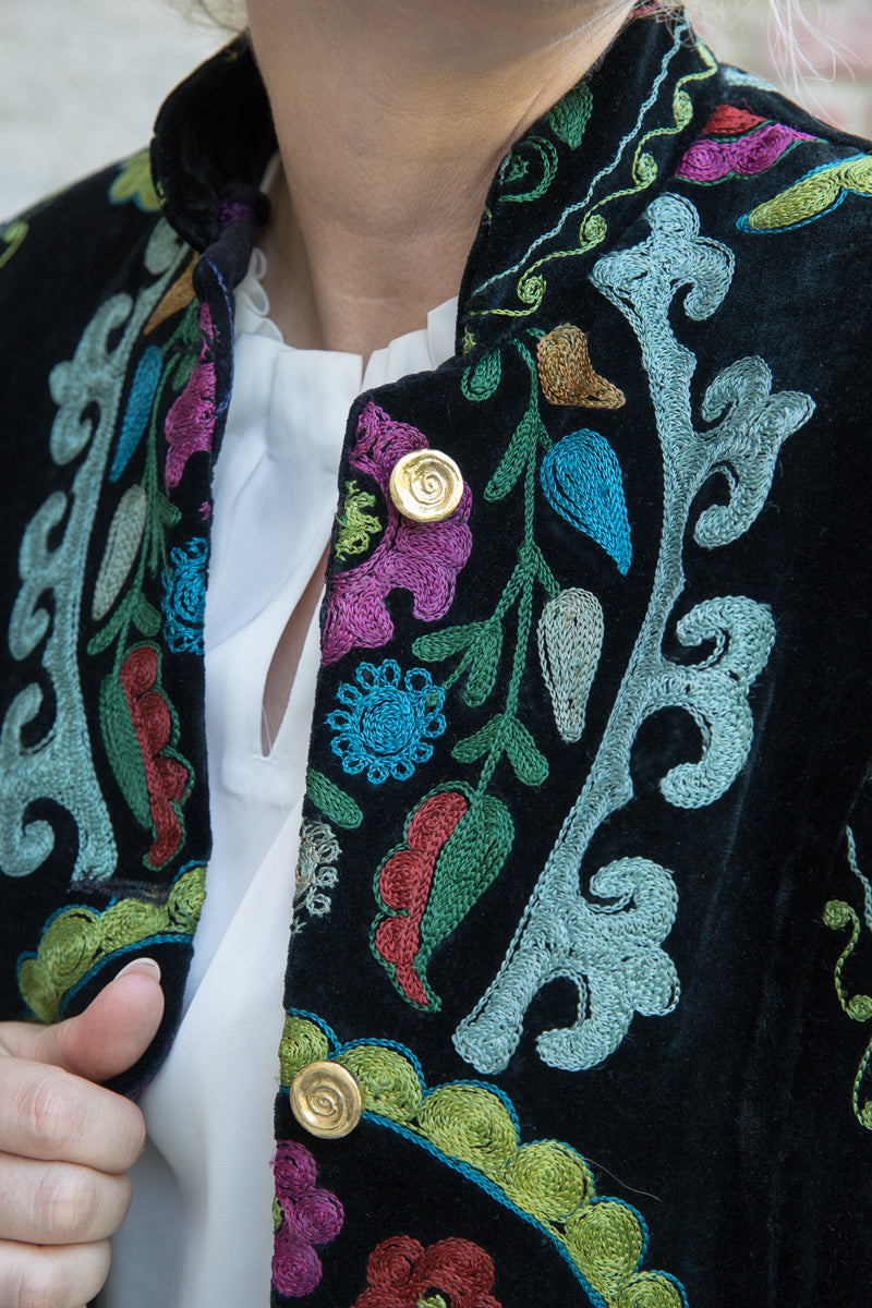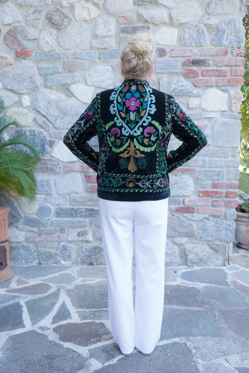 Questa giacca in velluto modello blazer combina morbidezza e fascino, arricchita da colori vivaci e ricami straordinari. Indossandola, si entra in un mondo di storia e tradizione tessile, dove ogni capo esprime unicità ed esclusività. La scelta accurata di velluti corposi, ricami pregiati e dettagli raffinati garantisce una qualità superiore. I bottoni originali sono stati sostituiti con eleganti bottoni gioiello, accuratamente selezionati per offrire un tocco di classe inimitabile. Ogni giacca JoyFull è scelta singolarmente per soddisfare i più alti standard di qualità.