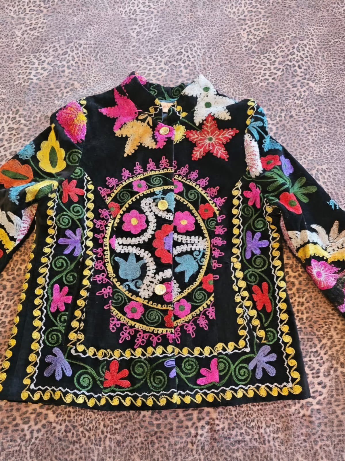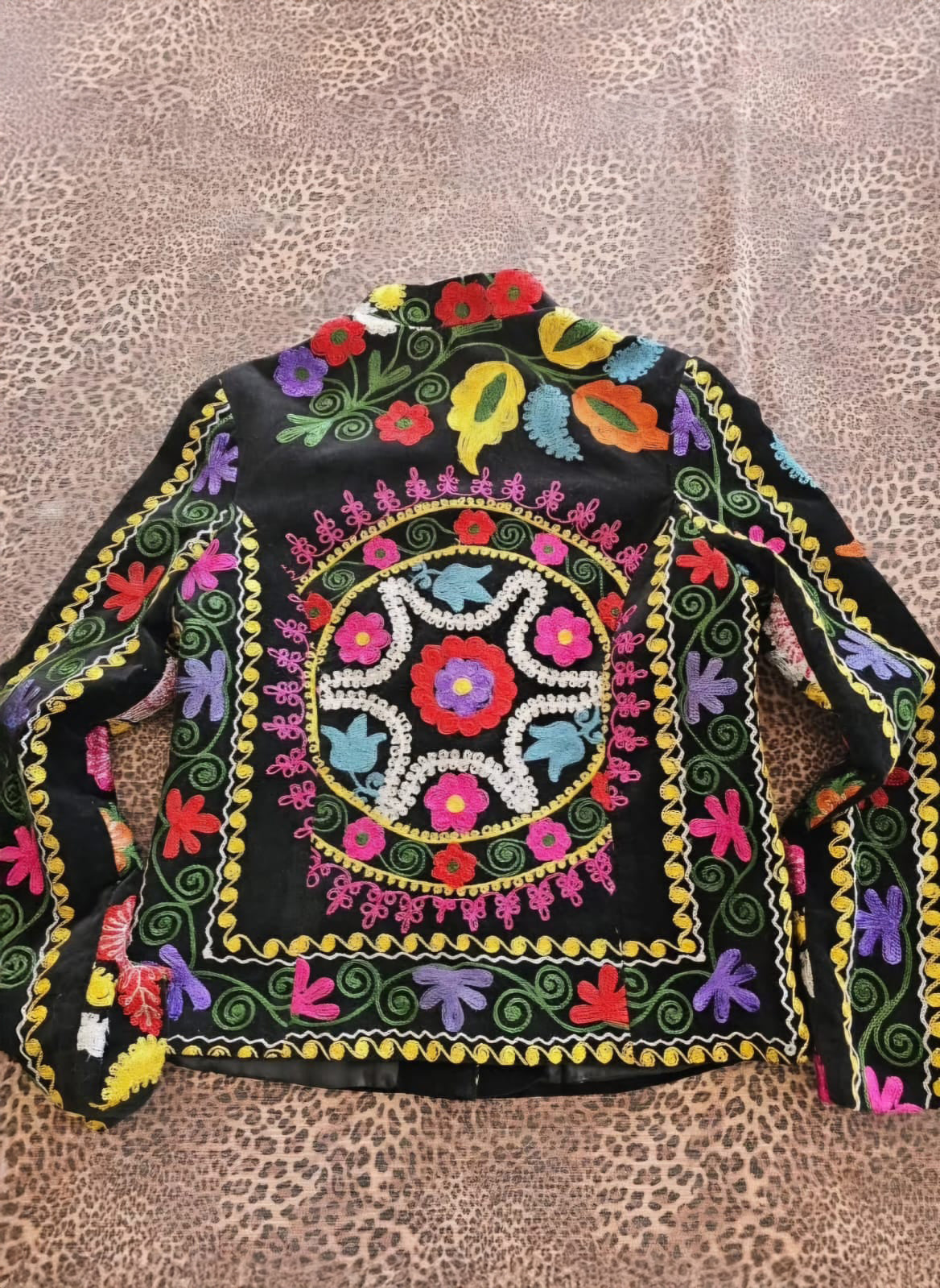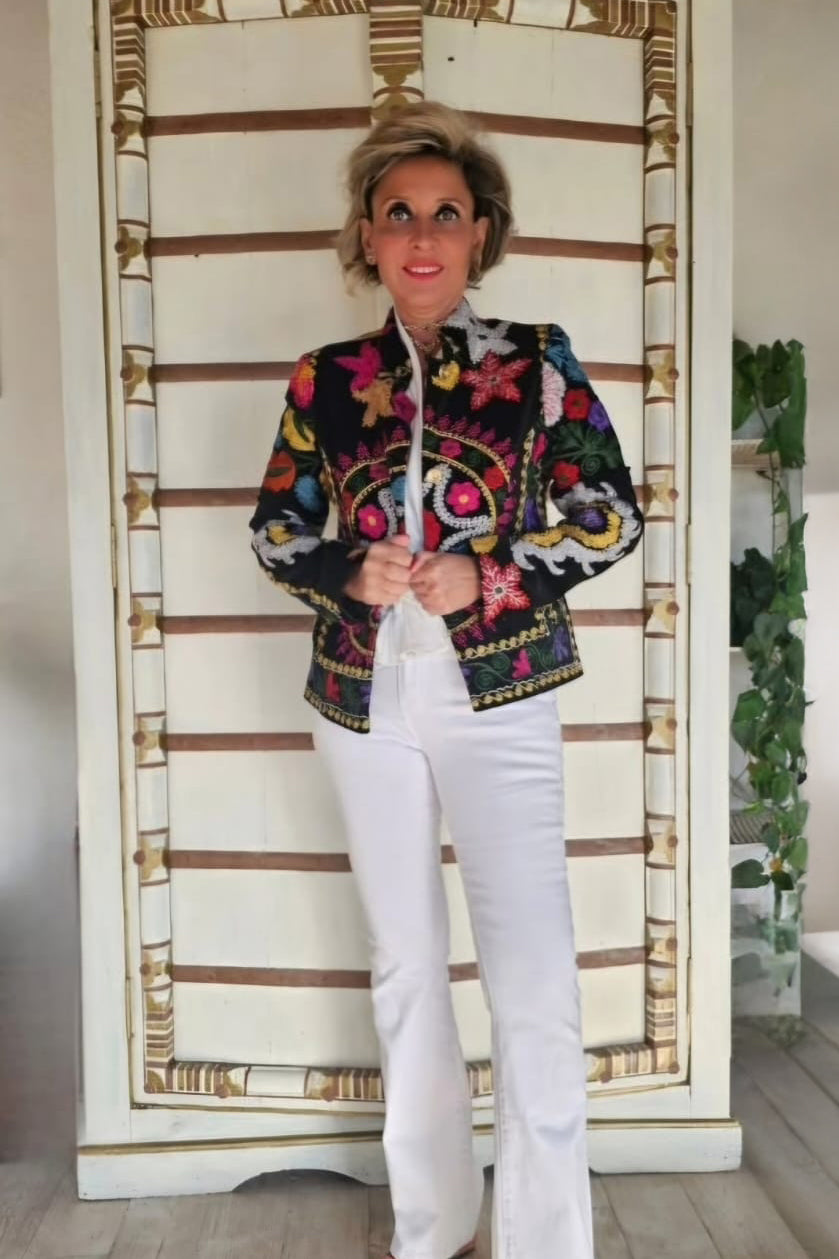 Questa giacca in velluto modello blazer combina morbidezza e fascino, arricchita da colori vivaci e ricami straordinari. Indossandola, si entra in un mondo di storia e tradizione tessile, dove ogni capo esprime unicità ed esclusività. La scelta accurata di velluti corposi, ricami pregiati e dettagli raffinati garantisce una qualità superiore. I bottoni originali sono stati sostituiti con eleganti bottoni gioiello, accuratamente selezionati per offrire un tocco di classe inimitabile. Ogni giacca JoyFull è scelta singolarmente per soddisfare i più alti standard di qualità.