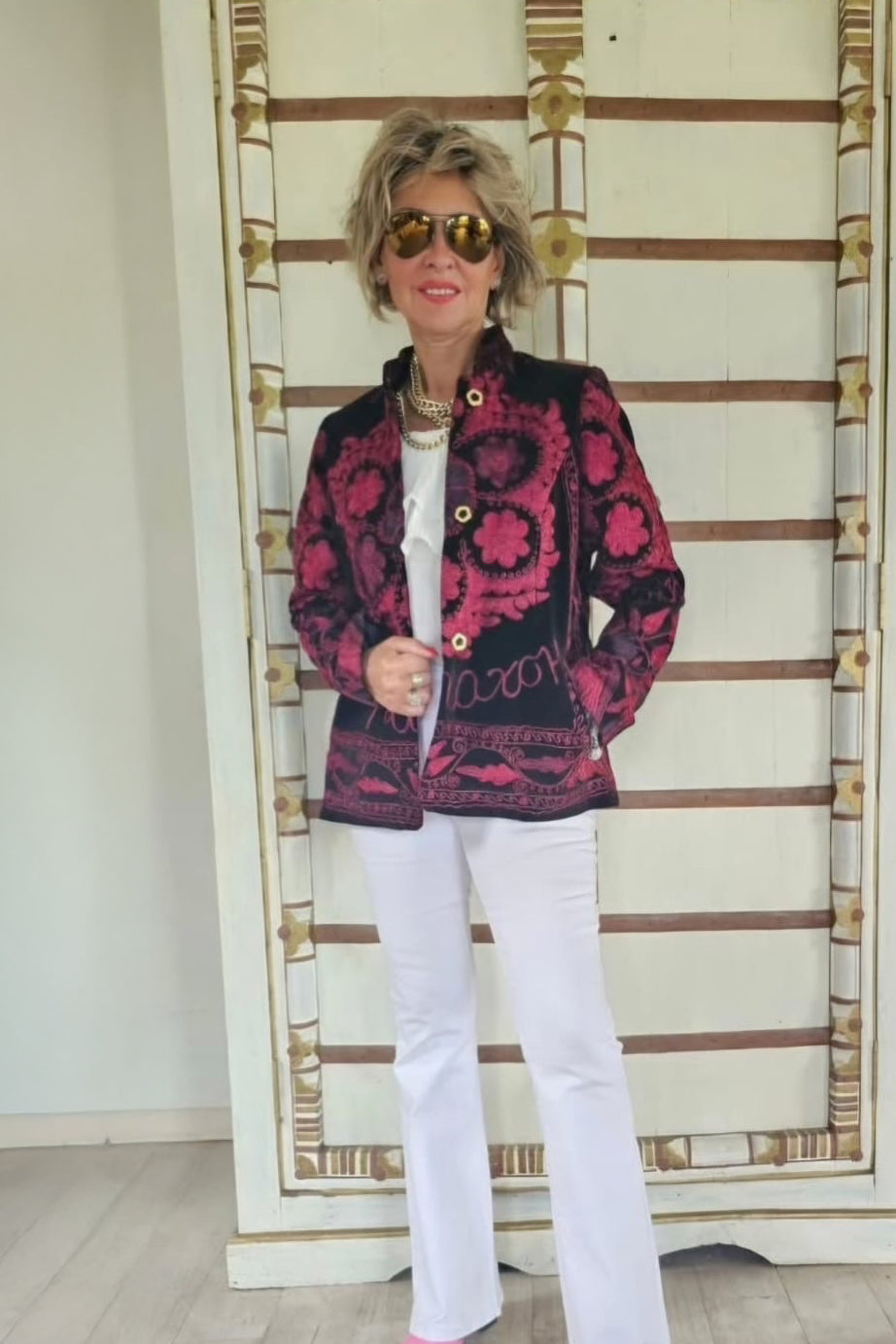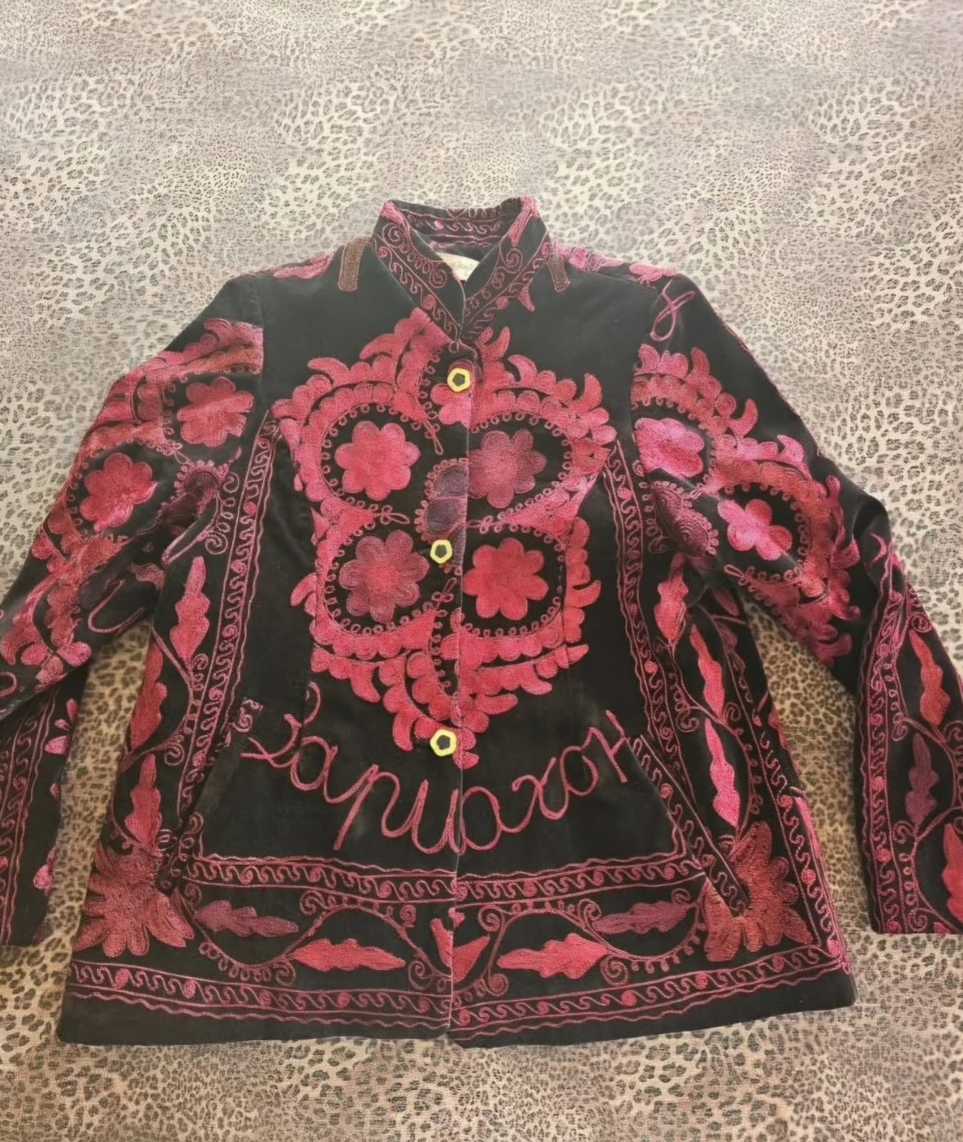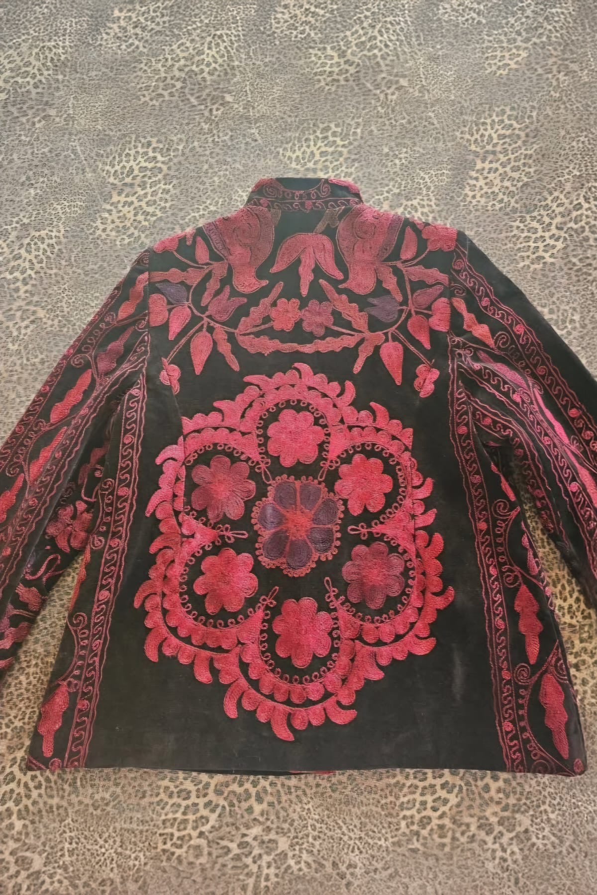Questa giacca in velluto modello blazer combina morbidezza e fascino, arricchita da colori vivaci e ricami straordinari. Indossandola, si entra in un mondo di storia e tradizione tessile, dove ogni capo esprime unicità ed esclusività. La scelta accurata di velluti corposi, ricami pregiati e dettagli raffinati garantisce una qualità superiore. I bottoni originali sono stati sostituiti con eleganti bottoni gioiello, accuratamente selezionati per offrire un tocco di classe inimitabile. Ogni giacca JoyFull è scelta singolarmente per soddisfare i più alti standard di qualità.