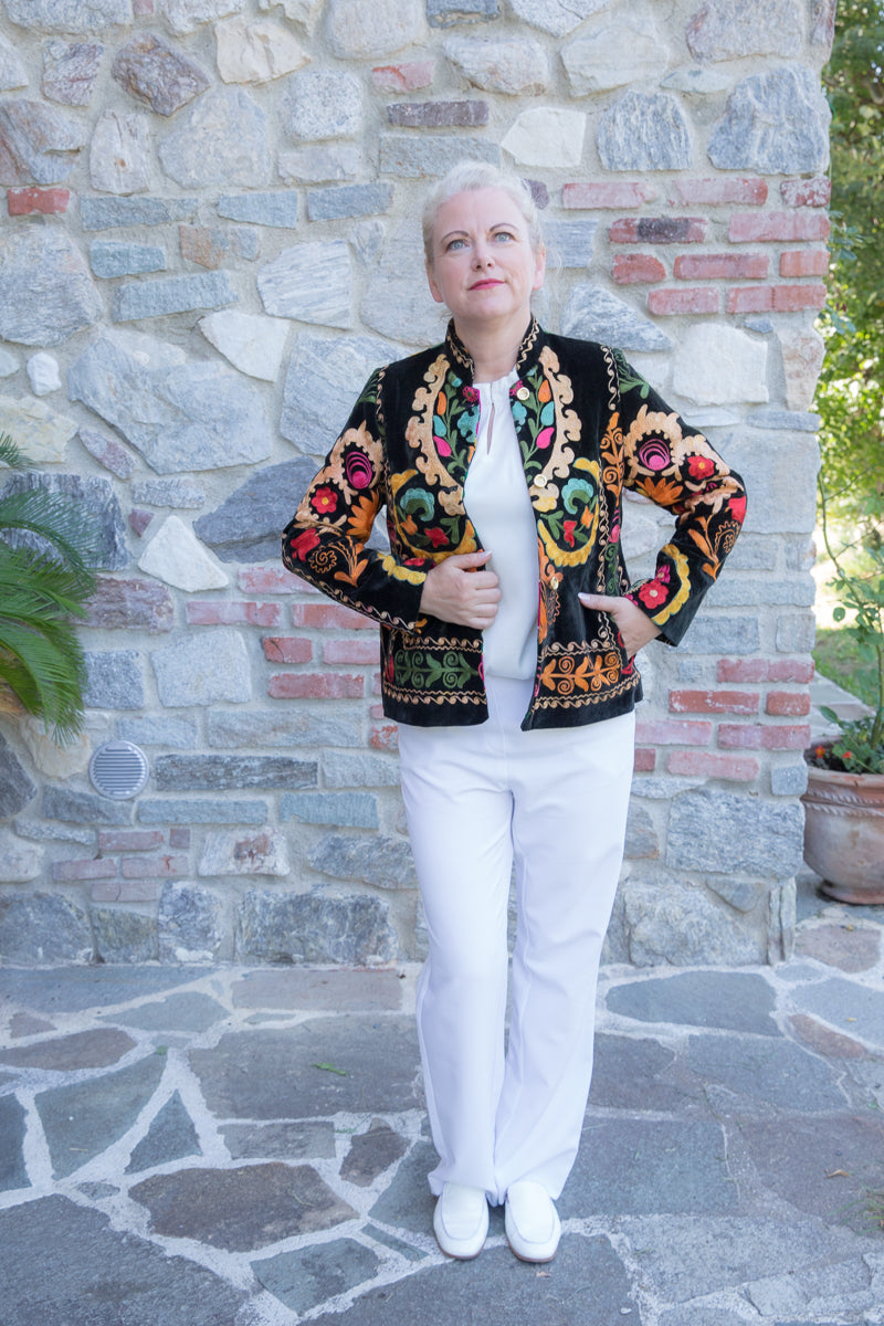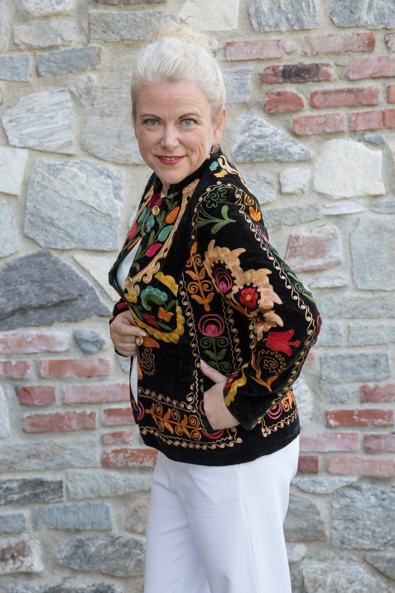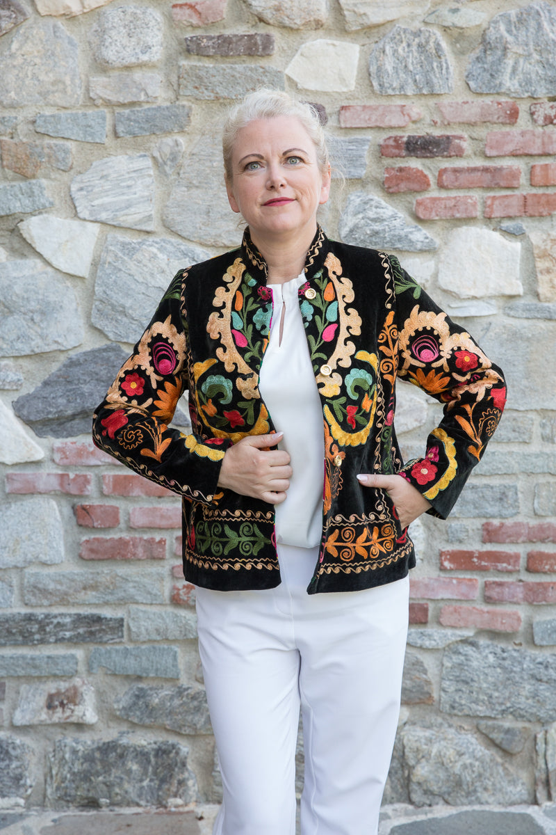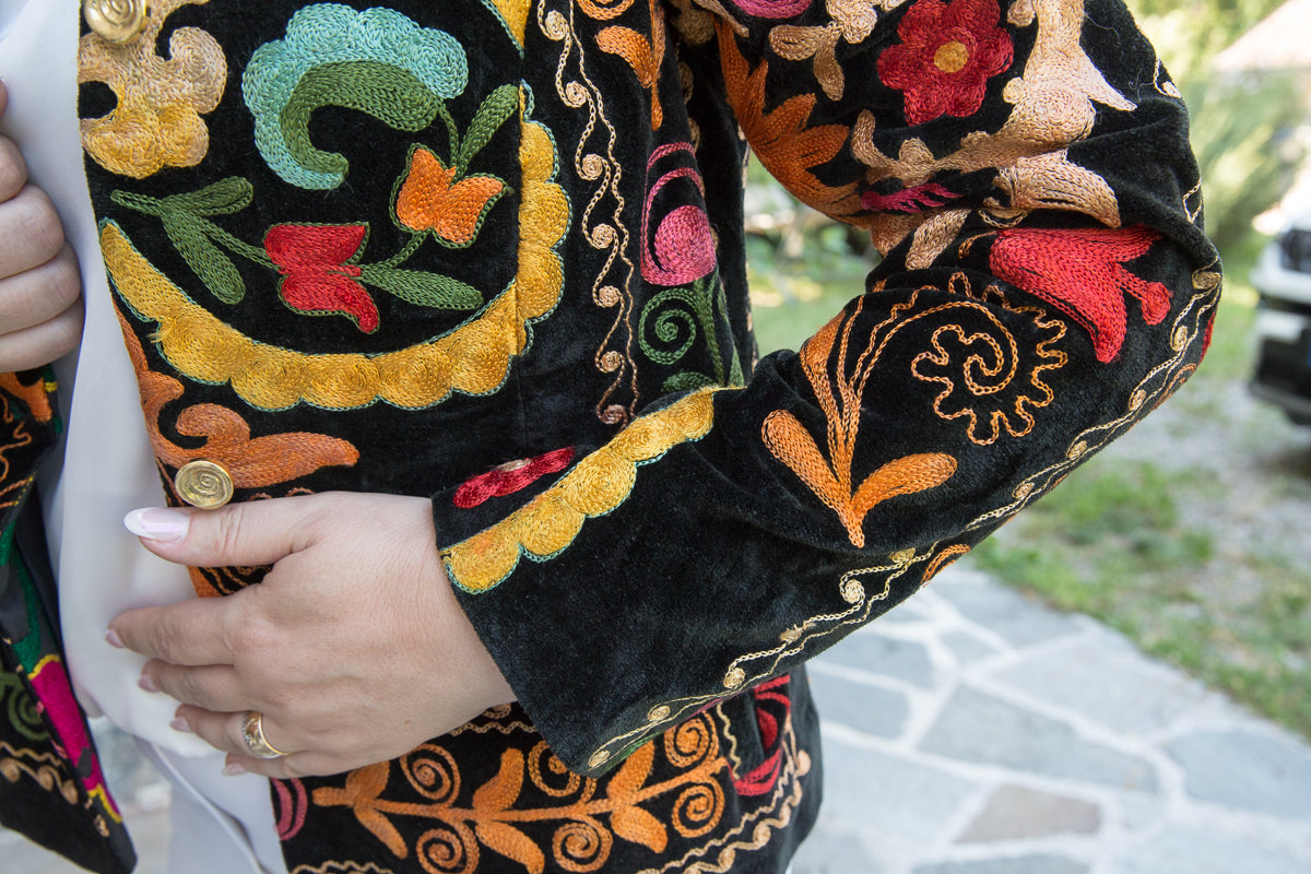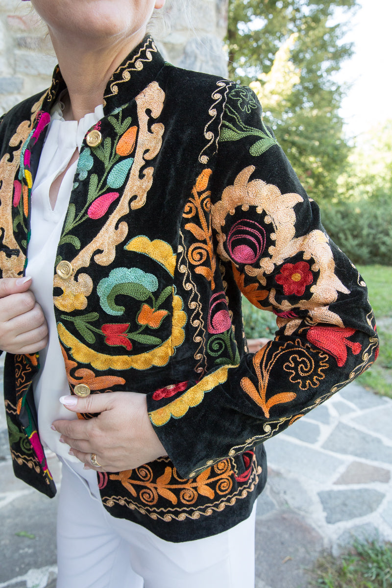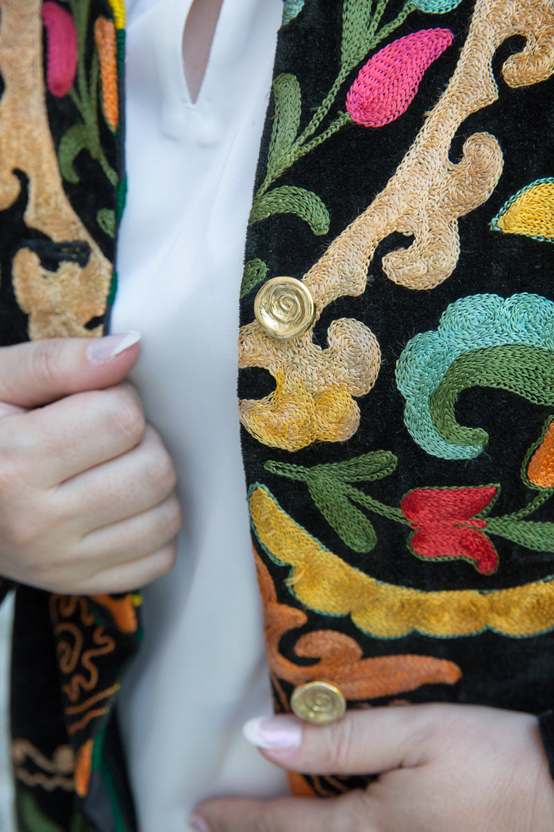 Questa giacca in velluto modello blazer combina morbidezza e fascino, arricchita da colori vivaci e ricami straordinari. Indossandola, si entra in un mondo di storia e tradizione tessile, dove ogni capo esprime unicità ed esclusività. La scelta accurata di velluti corposi, ricami pregiati e dettagli raffinati garantisce una qualità superiore. I bottoni originali sono stati sostituiti con eleganti bottoni gioiello, accuratamente selezionati per offrire un tocco di classe inimitabile. Ogni giacca JoyFull è scelta singolarmente per soddisfare i più alti standard di qualità.