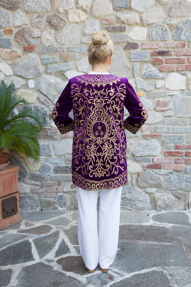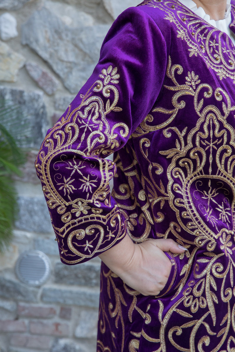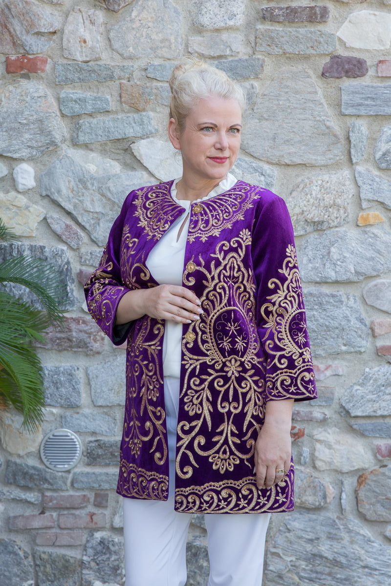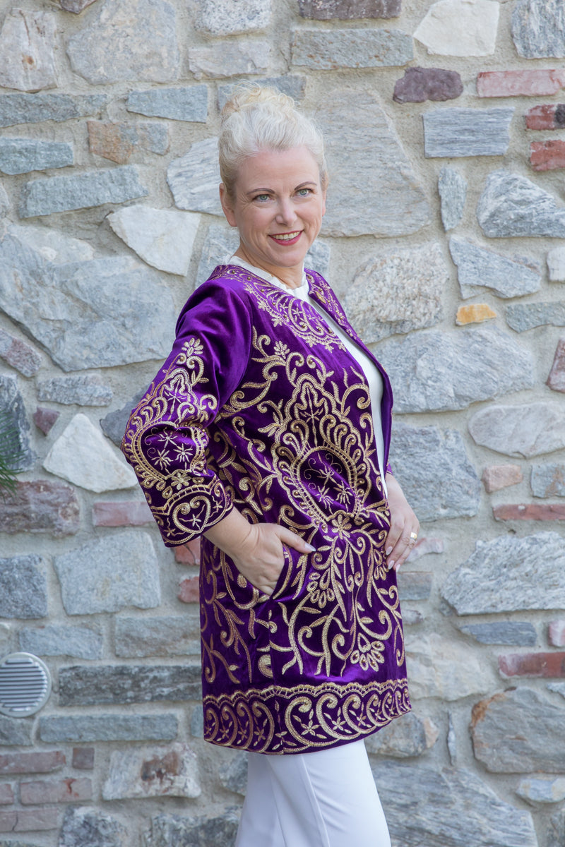 Giacca lunga ed avvolgente, perfetta anche come soprabito versatile e facile da indossare. Allegra, colorata e raffinata, questa giacca aggiunge un tocco di particolarità e charme al tuo look. Indossarla significa distinguersi con gusto e unicità, ricevendo complimenti ammirati ovunque tu vada. Ogni capo esprime grinta e personalità, garantendo l'esclusività di pezzi unici e introvabili. I dettagli come i preziosi bottoni gioiello, sostituiti uno per uno, conferiscono uno standard di qualità e stile ineguagliabile.