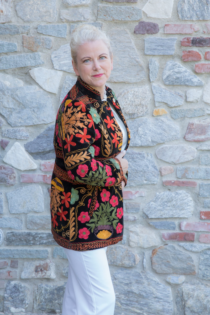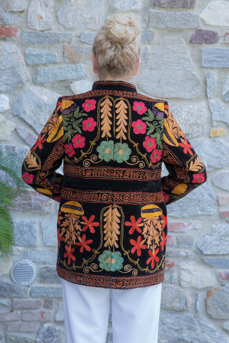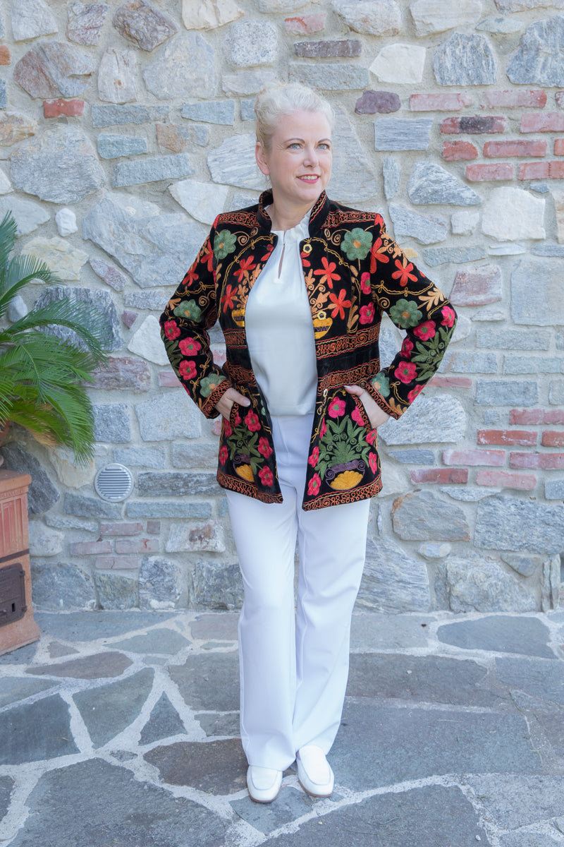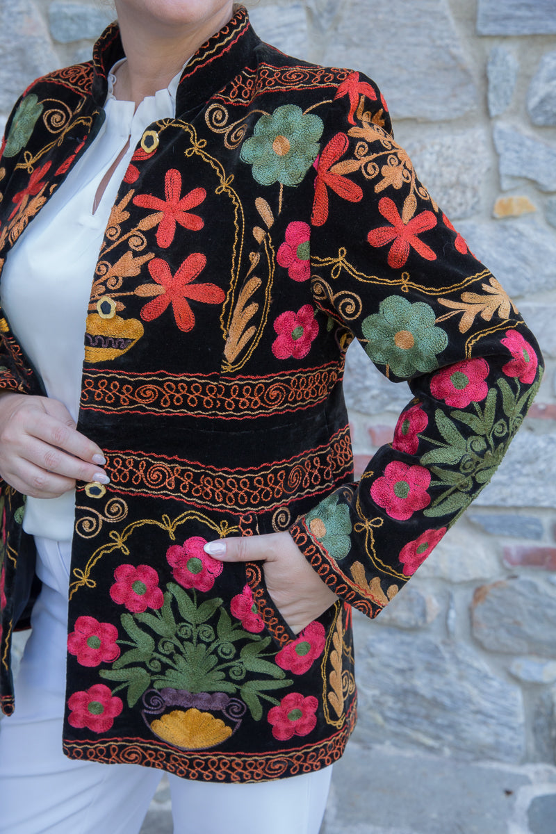 Giacca lunga ed avvolgente, perfetta anche come soprabito versatile e facile da indossare. Allegra, colorata e raffinata, questa giacca aggiunge un tocco di particolarità e charme al tuo look. Indossarla significa distinguersi con gusto e unicità, ricevendo complimenti ammirati ovunque tu vada. Ogni capo esprime grinta e personalità, garantendo l'esclusività di pezzi unici e introvabili. I dettagli come i preziosi bottoni gioiello, sostituiti uno per uno, conferiscono uno standard di qualità e stile ineguagliabile.