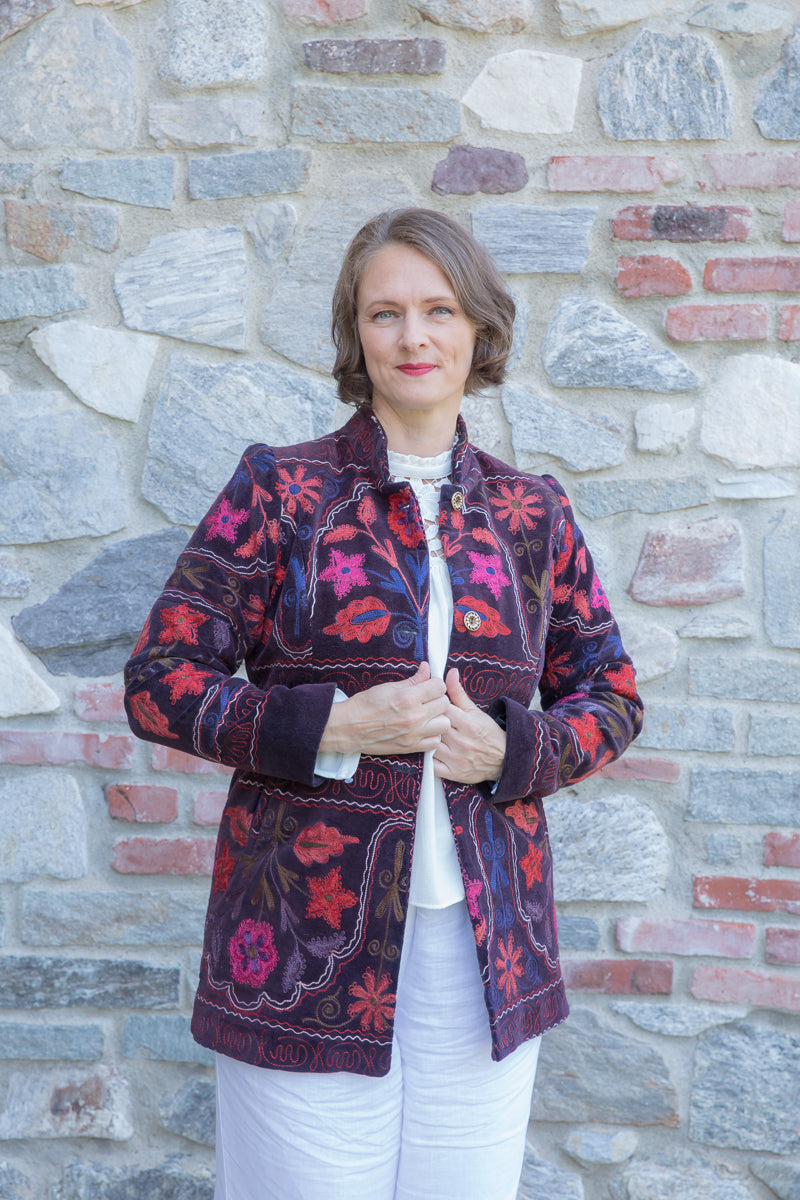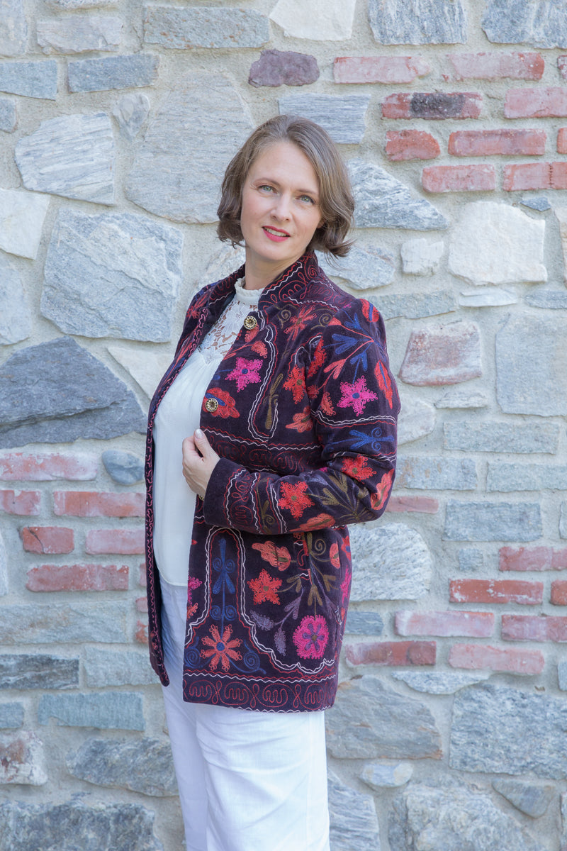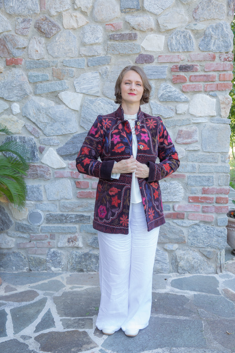 Giacca lunga ed avvolgente, perfetta anche come soprabito versatile e facile da indossare. Allegra, colorata e raffinata, questa giacca aggiunge un tocco di particolarità e charme al tuo look. Indossarla significa distinguersi con gusto e unicità, ricevendo complimenti ammirati ovunque tu vada. Ogni capo esprime grinta e personalità, garantendo l'esclusività di pezzi unici e introvabili. I dettagli come i preziosi bottoni gioiello, sostituiti uno per uno, conferiscono uno standard di qualità e stile ineguagliabile.