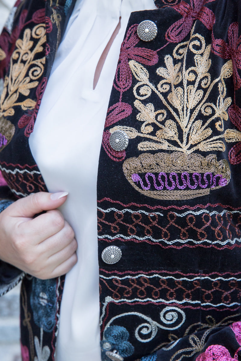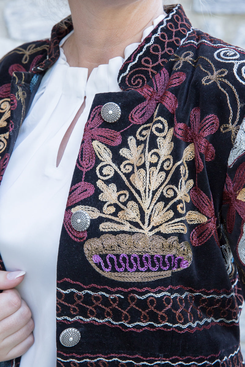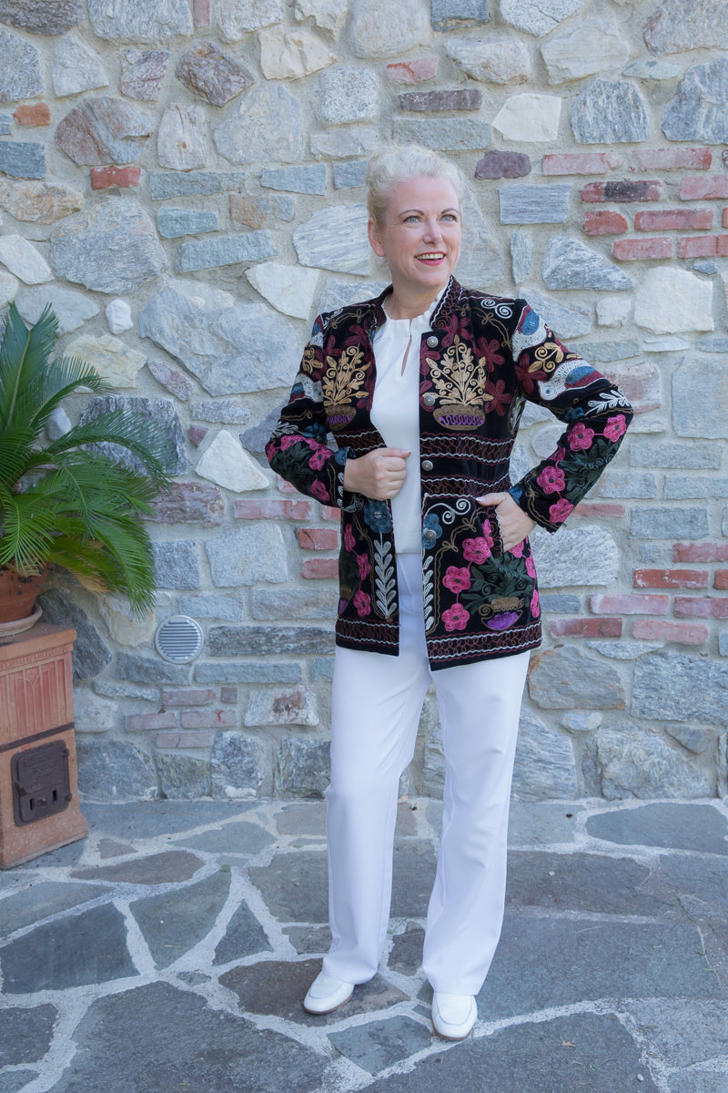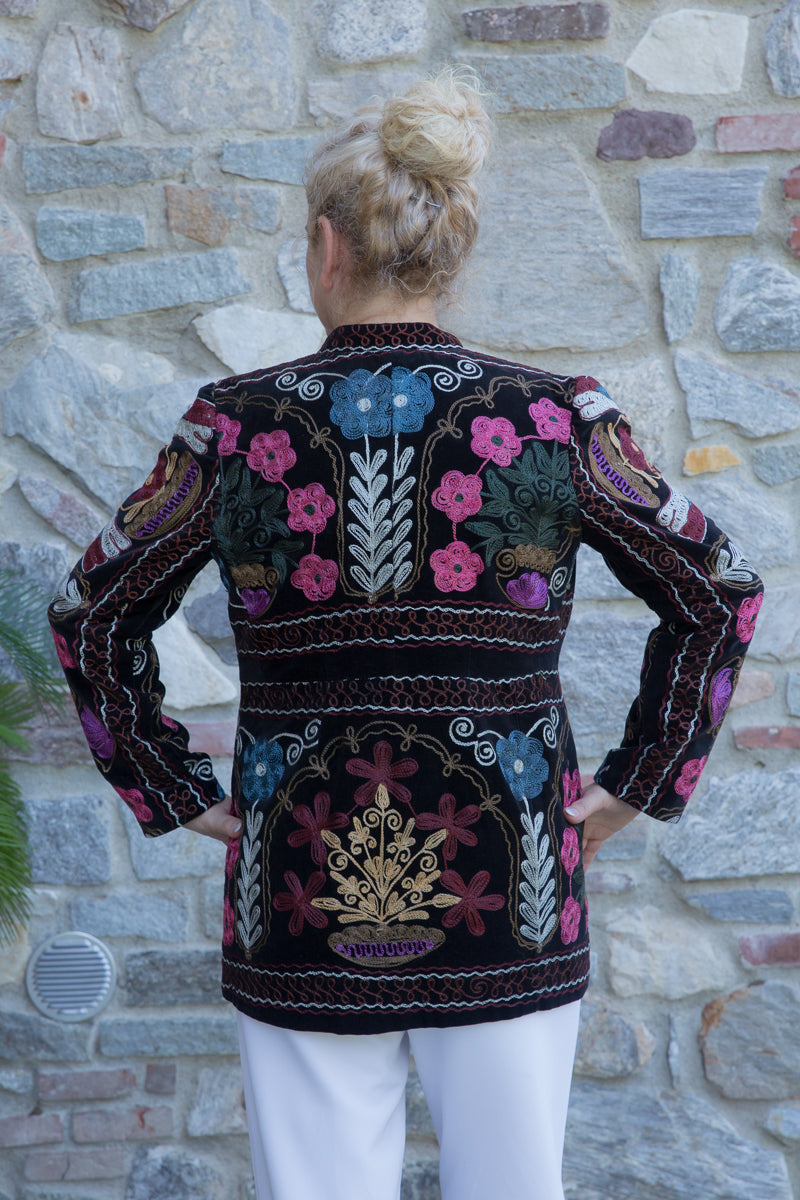 Giacca lunga ed avvolgente, perfetta anche come soprabito versatile e facile da indossare. Allegra, colorata e raffinata, questa giacca aggiunge un tocco di particolarità e charme al tuo look. Indossarla significa distinguersi con gusto e unicità, ricevendo complimenti ammirati ovunque tu vada. Ogni capo esprime grinta e personalità, garantendo l'esclusività di pezzi unici e introvabili. I dettagli come i preziosi bottoni gioiello, sostituiti uno per uno, conferiscono uno standard di qualità e stile ineguagliabile.