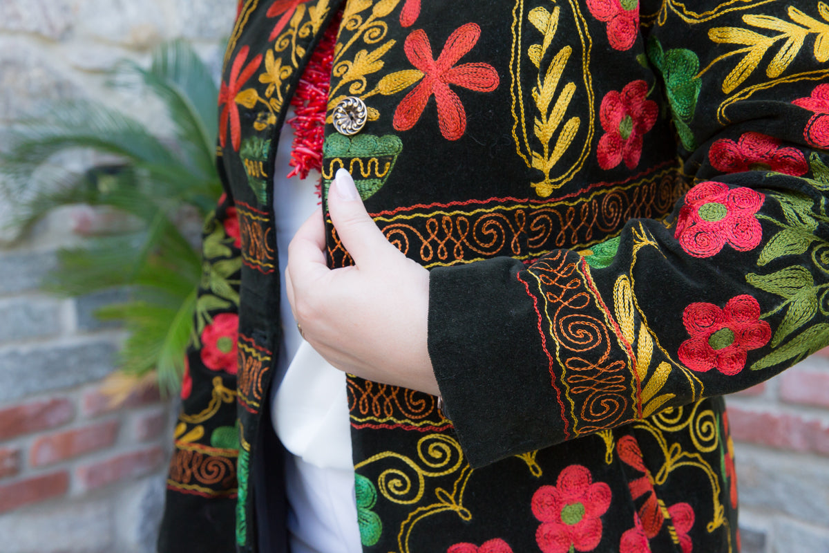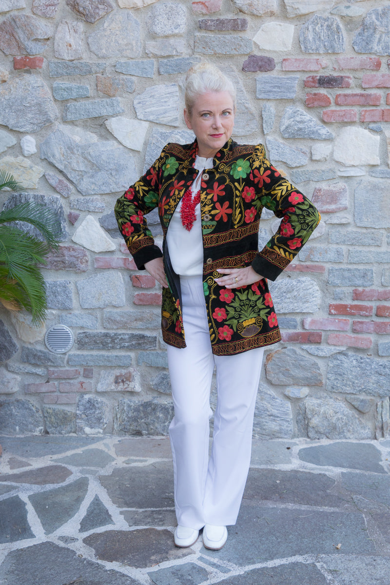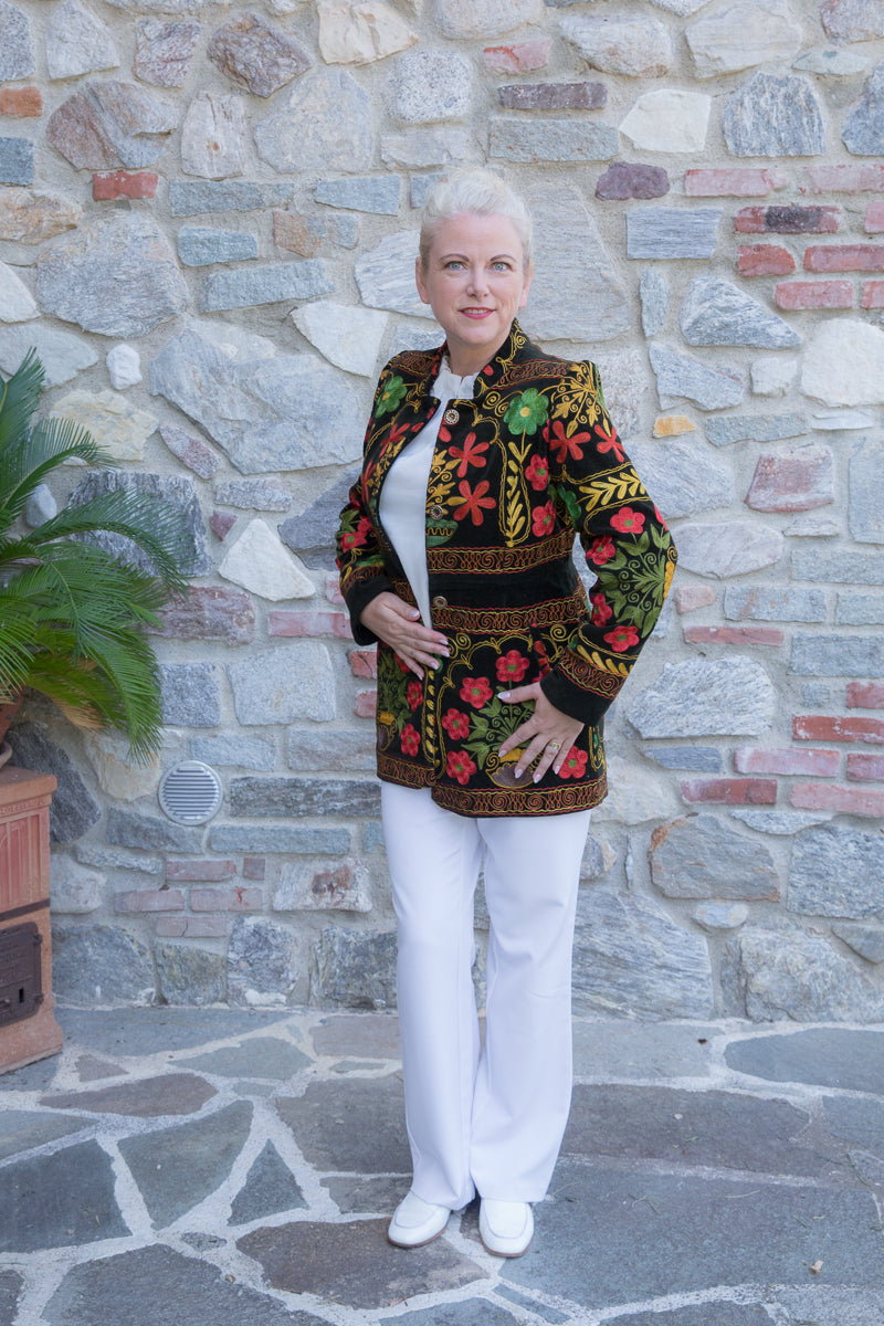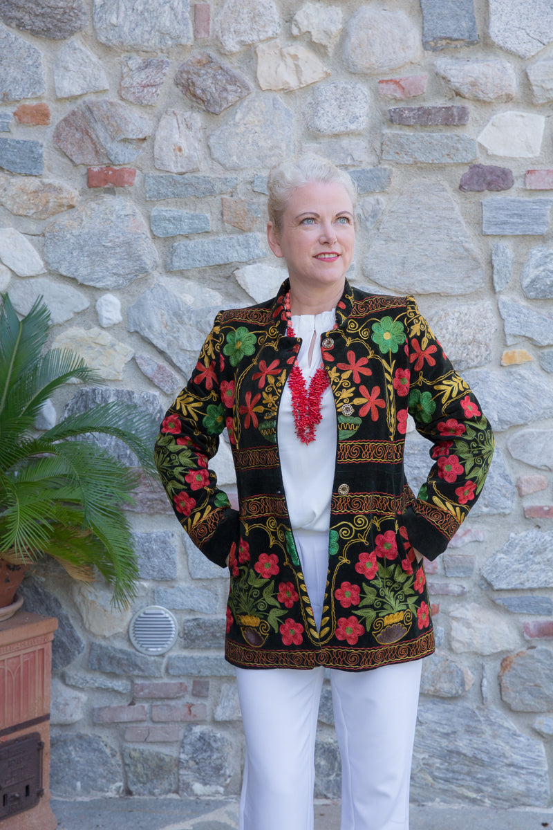 Giacca lunga ed avvolgente, perfetta anche come soprabito versatile e facile da indossare. Allegra, colorata e raffinata, questa giacca aggiunge un tocco di particolarità e charme al tuo look. Indossarla significa distinguersi con gusto e unicità, ricevendo complimenti ammirati ovunque tu vada. Ogni capo esprime grinta e personalità, garantendo l'esclusività di pezzi unici e introvabili. I dettagli come i preziosi bottoni gioiello, sostituiti uno per uno, conferiscono uno standard di qualità e stile ineguagliabile.