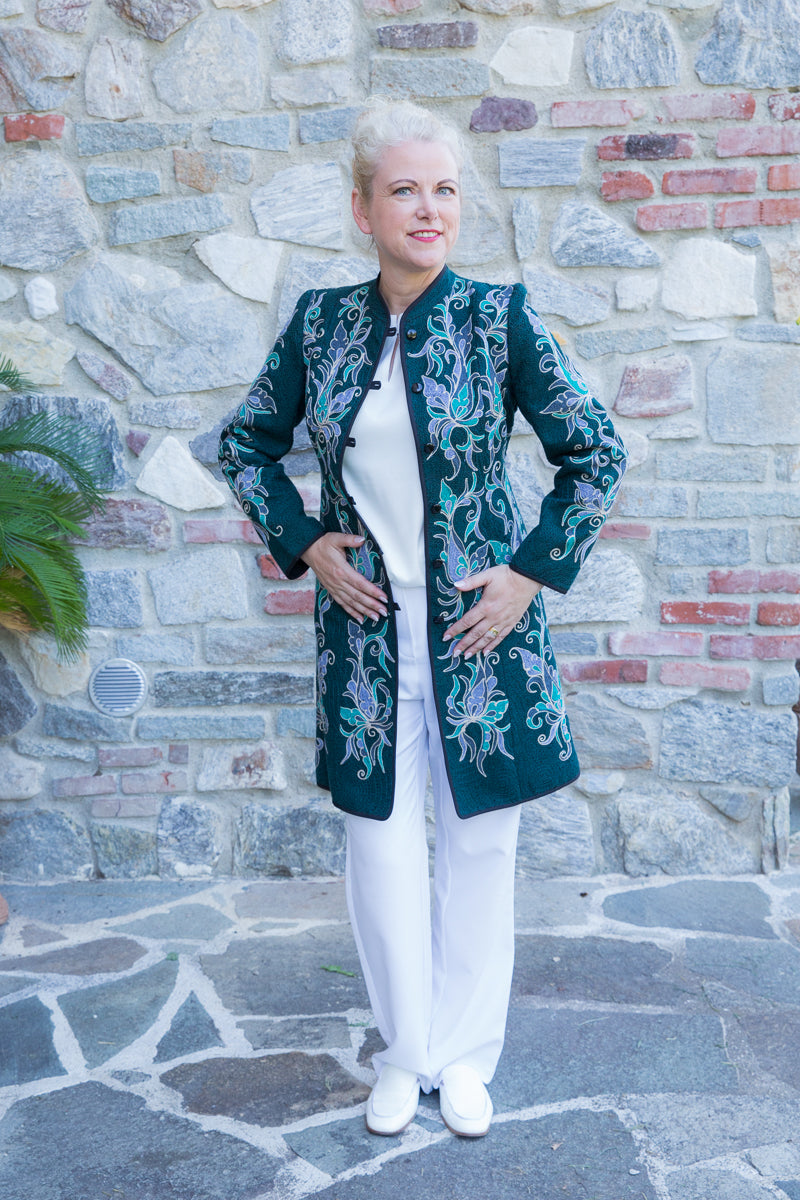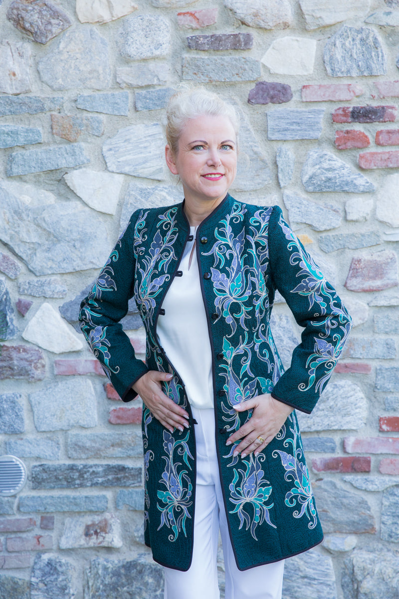 Straordinario soprabito realizzato a mano, decorato con ricami unici e pregiati arabeschi. Con tessuto fermo e fit regular, si distingue per le linee asciutte ed eleganti che valorizzano chi lo indossa. I colori vivaci e i dettagli artigianali trasformano questo soprabito in un autentico gioiello. Ogni capo è accuratamente selezionato e impreziosito da bottoni gioiello, per offrire un tocco esclusivo firmato JoyFull. Realizzati interamente a mano in Uzbekistan, questi capi sono espressione di una tradizione artigianale unica.